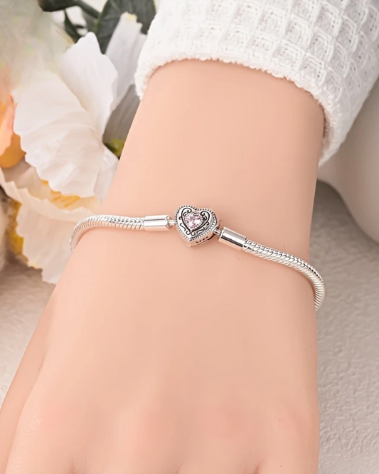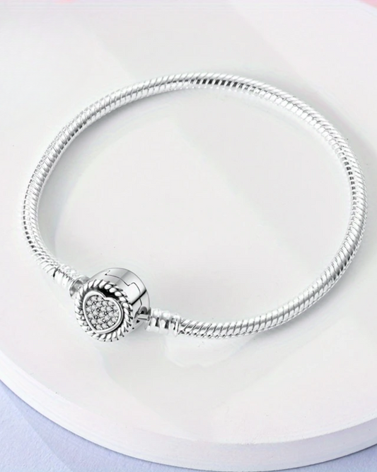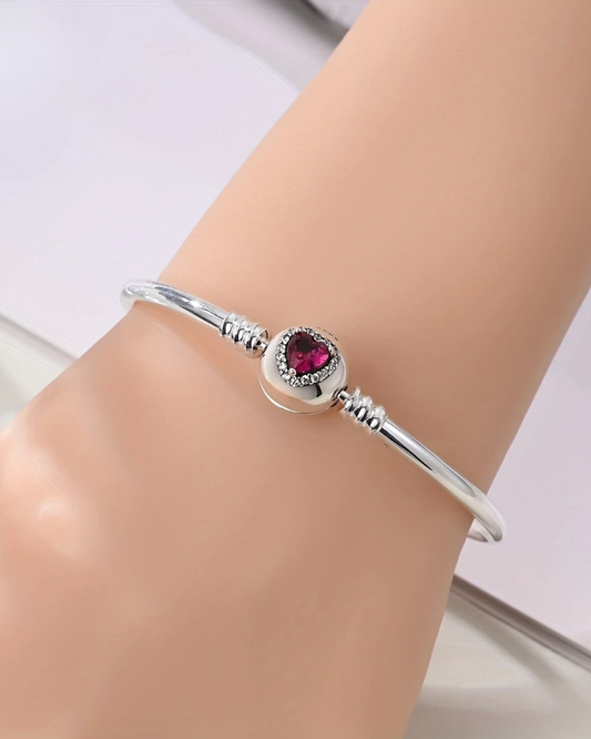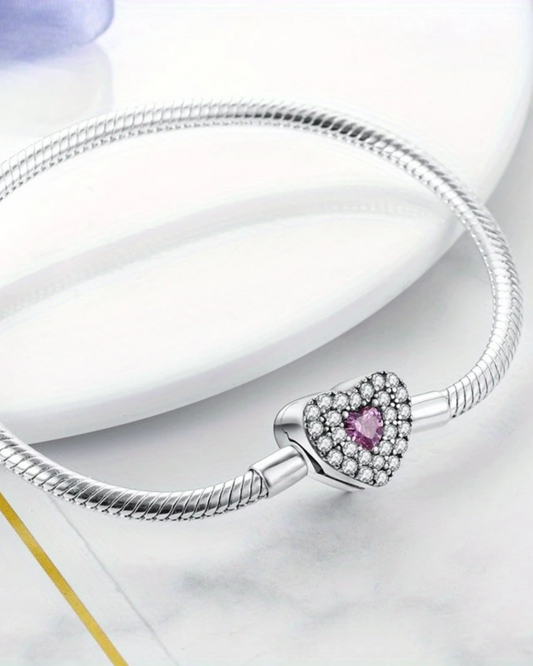 BRAZALETE DISEÑO SEMI RIGIDO CON DIJE REDONDO CON CIRCON CORAZON - PRE ORDEN