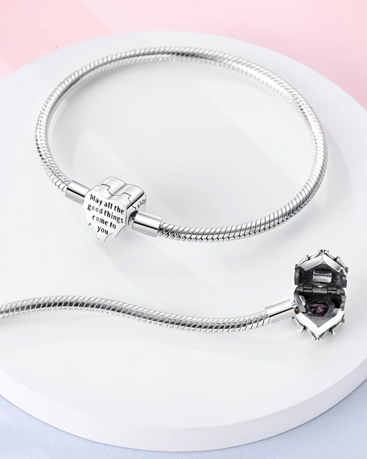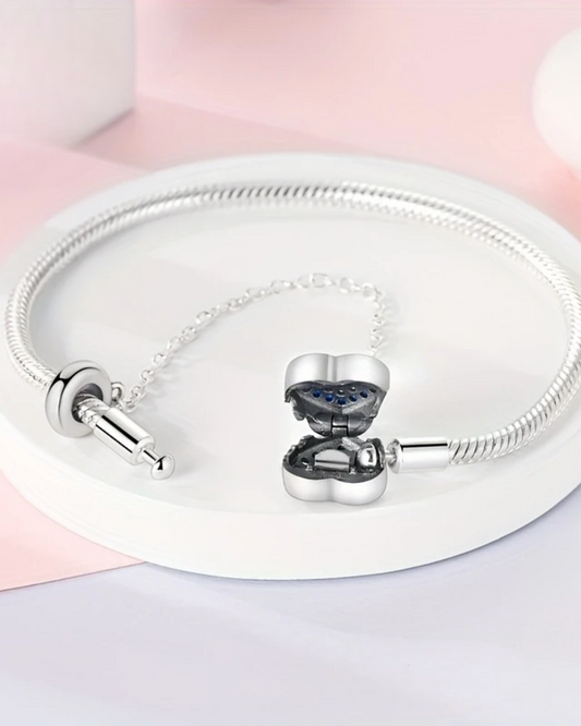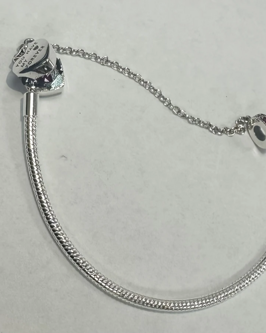 BRAZALETE DISEÑO SEMI RIGIDO CON DIJE CORAZÓN Y BALIN - PRE ORDEN