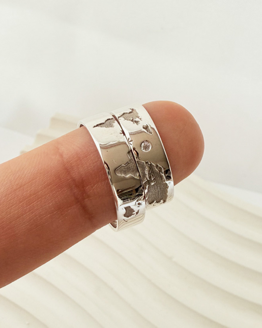 DUO DE ANILLOS MAPA MUNDI Y CIRCON