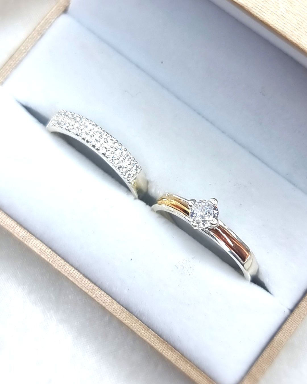 DUO DE ANILLOS MEDIA CHURUMBELA + ANILLO CIRCON CON LAMINA DE ORO